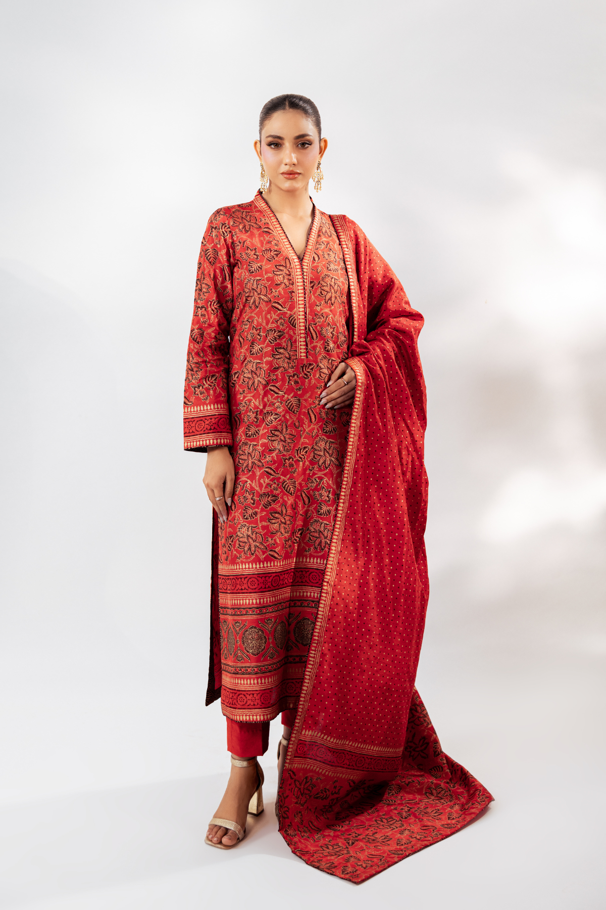 Odhini: Double Sided Block Printed Odhini Total Fabric: 7 metres Block Printed Shirt Plain Trouser