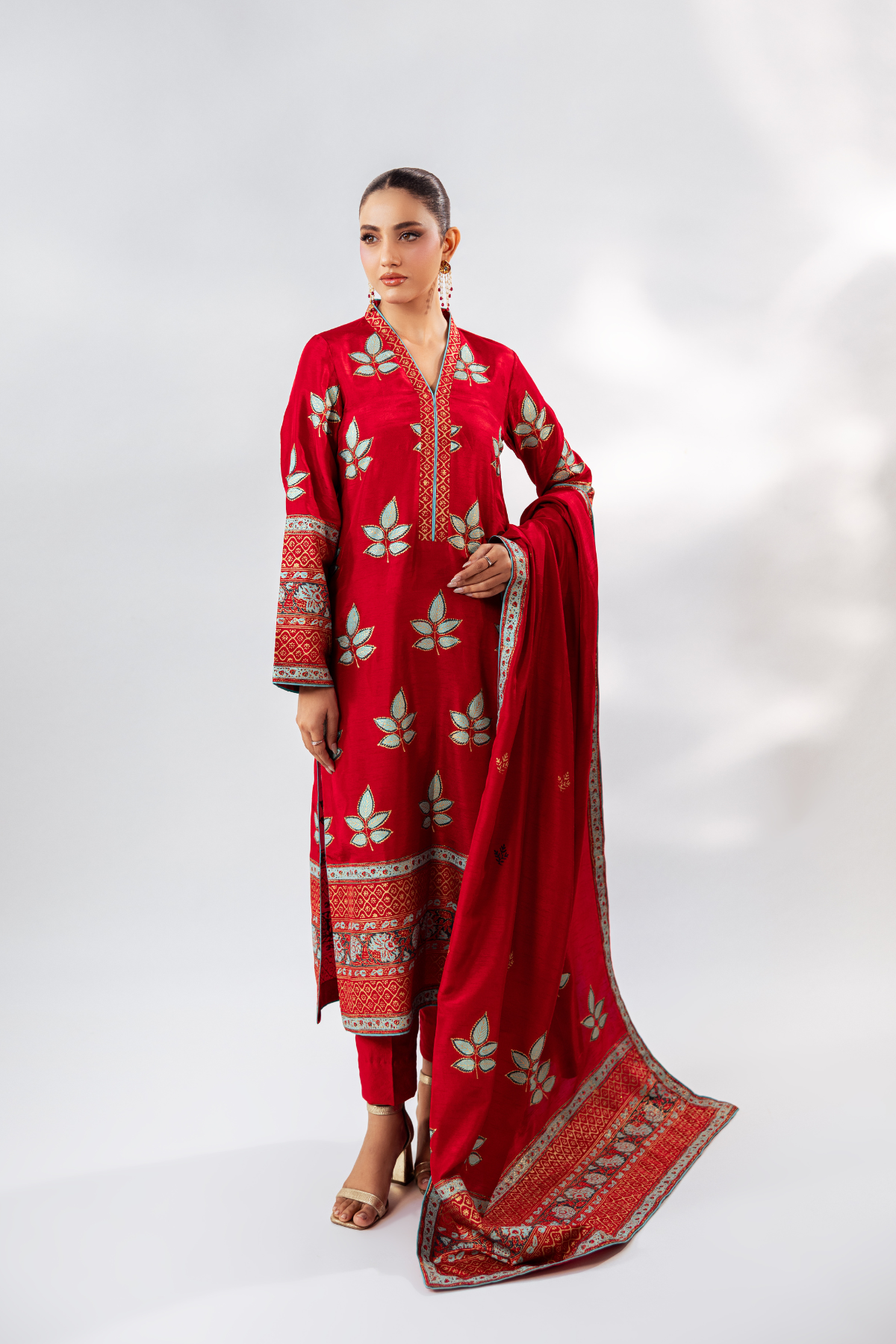 Block Printed Shirt and Duppatta with Plain Trouser