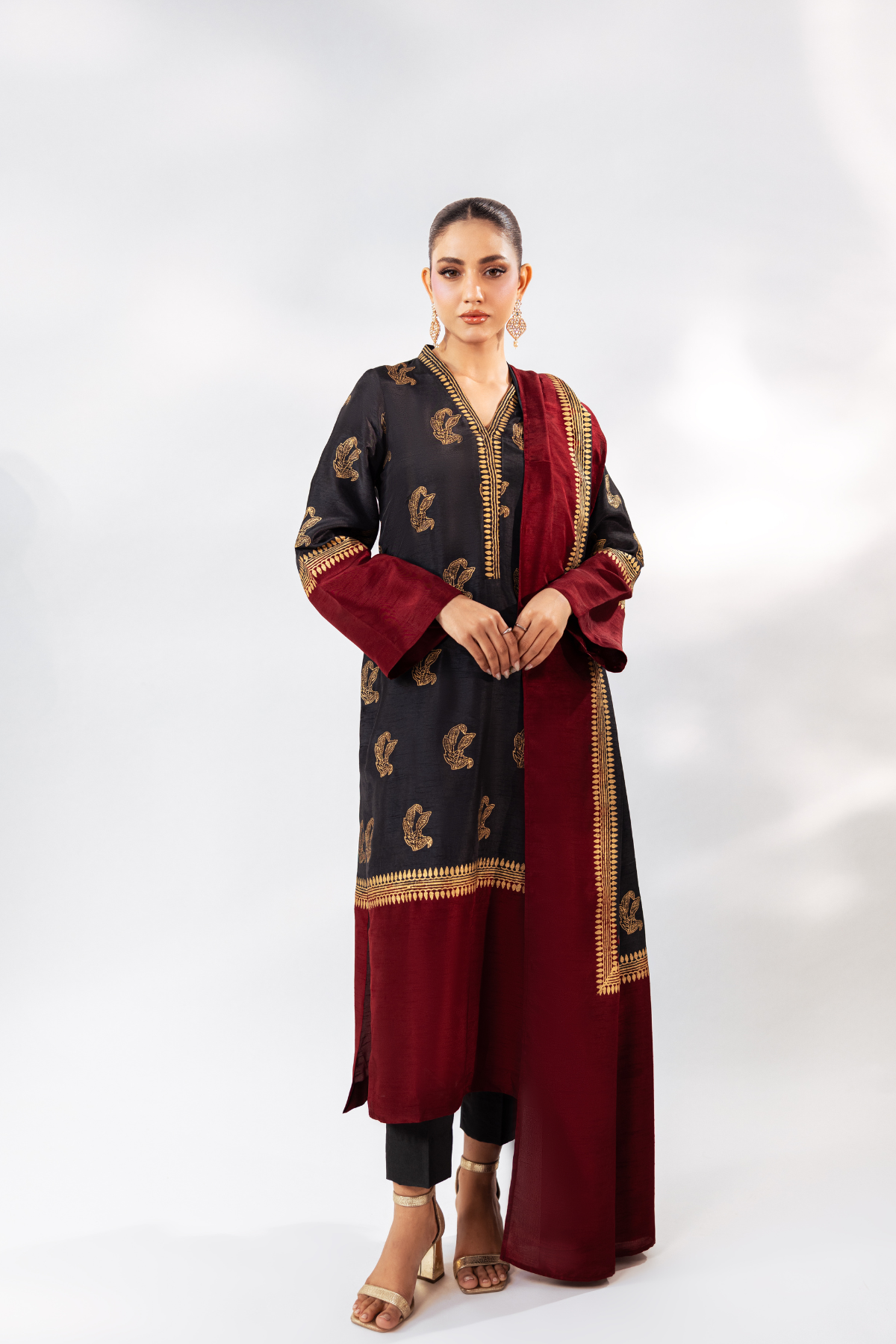 Block Printed Shirt and Duppatta with Plain Trouser